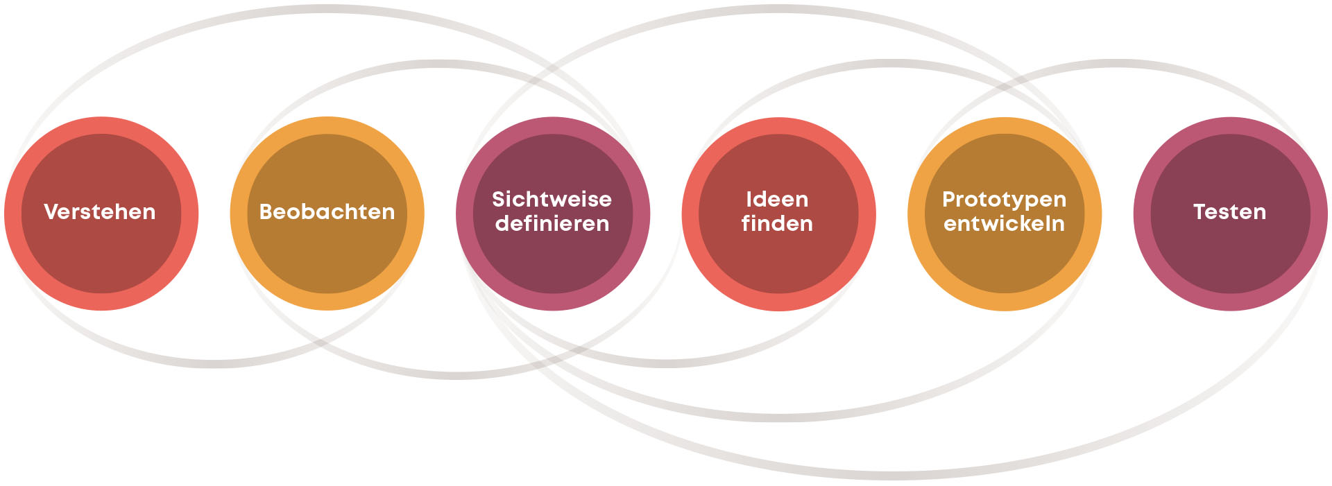 Design Thinking baut auf Verstehen und Beobachten auf. Das ist entscheidend. Mit dieser Methode richten wir den Blick auf jene, die sich an Ihrer Marke orientieren sollen: Dies sind nicht nur Ihre Mitarbeitenden, sondern auch Ihre Kunden, Ihre Lieferanten, Ihre Medienkontakte, Ihre Händler, Ihre Intermediäre und Ihre Investoren. Wir drehen unsere Ideen so lange durch den Design-Thinking-Prozess, bis sie sitzen.